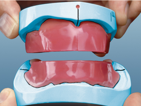 Během výroby základní desky může váš technik potřebovat zablokovat jakékoli podříznutí na hlavním modelu, aby se zabránilo zlomení. To může mít za následek mírně uvolněnou základní desku během zkoušení. V takových případech lze ke zlepšení stability použít malé množství adheziva pro zubní protézy. Jakmile je zubní protéza zpracována, lícování bude přesné.